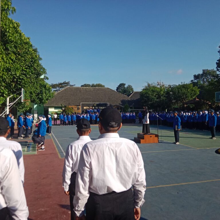 Kemenag Sleman News (MTsN 8 Sleman) – Upacara bendera MTs Negeri 8 Sleman berlangsung dengan tertib, khidmat dan lancar pada hari Senin (5/8/2024). Bertindak sebagai petugas upacara adalah siswa dari kelas 9E, sementara amanat upacara disampaikan oleh Ibu Andriyani Dwi Puspitahadi, S. Pd., yang merupakan guru Bahasa inggris di MTs Negeri 8 Sleman.