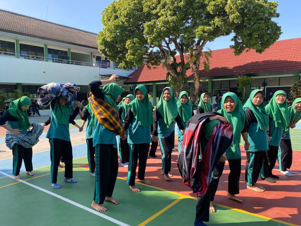 Hari pertama Pekan Sehat Jiwa Raga Senin 12 Agusutus 2024 diisi dengan kegiatan lomba adu kekompakan dan ketangkasan salah satunya Estafet Sarung. Ketua panitia Pekan Sehat Jiwa Raga sekaligus Koordinator P5RA MTsN 3 Sleman 2024-2025 Nawang Hernawan Suatmadji, S.Pd mengungkapkan bahwa estafet sarung dipilih karena sesuai dengan dimensi yang dipilih dalam tema P5RA dan menjadi lomba khas ala peringatan HUT RI. βDalam Estafet Sarung sangat menonjolkan kerja sama dan ketangkasan antar pesertanyaβ ungkap Aji panggilan akrabnya. Lomba estafet sarung berlangsung sangat meriah dengan riuh dukungan penonton pada tim yang dilombakan. Nurvam Kusmadi, S.Pd sebagai koordinator lomba estafet sarung menyusun skema lomba dalam kategori putra dan putri. Tim estafet sarung Kelas VII D, VIII B dan IX B menjadi juara untuk kategori putra pada masing-masing jenjang untuk kemudian bertemu di Final. Sedangkan untuk kategori putri, bertemu di final tim etafet sarung kelas VII B, VIII B dan IX A. Dengan teknik dan cara masing-masing tim berusaha memakai sarung dan mengopernya ke anggota lain sambil berpegangan tangan secepat mungkin. Menjadi tim terkompak dan yang paling pertama mampu menyelesaikan lomba, tim putra IX B dan putri IX A berhasil menjuarai lomba estafet sarung. (ind)