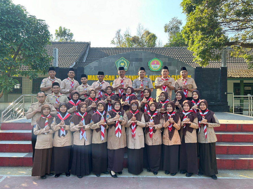 Guru dan Pegawai MTsN 2 Sleman Kompak Kenakan Seragam Pramuka pada Hari Pramuka