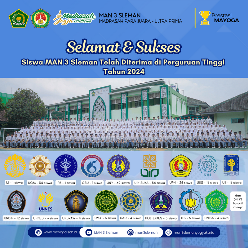 291 Alumni MAN 3 Sleman Tembus Perguruan Tinggi Favorit Tahun 2024