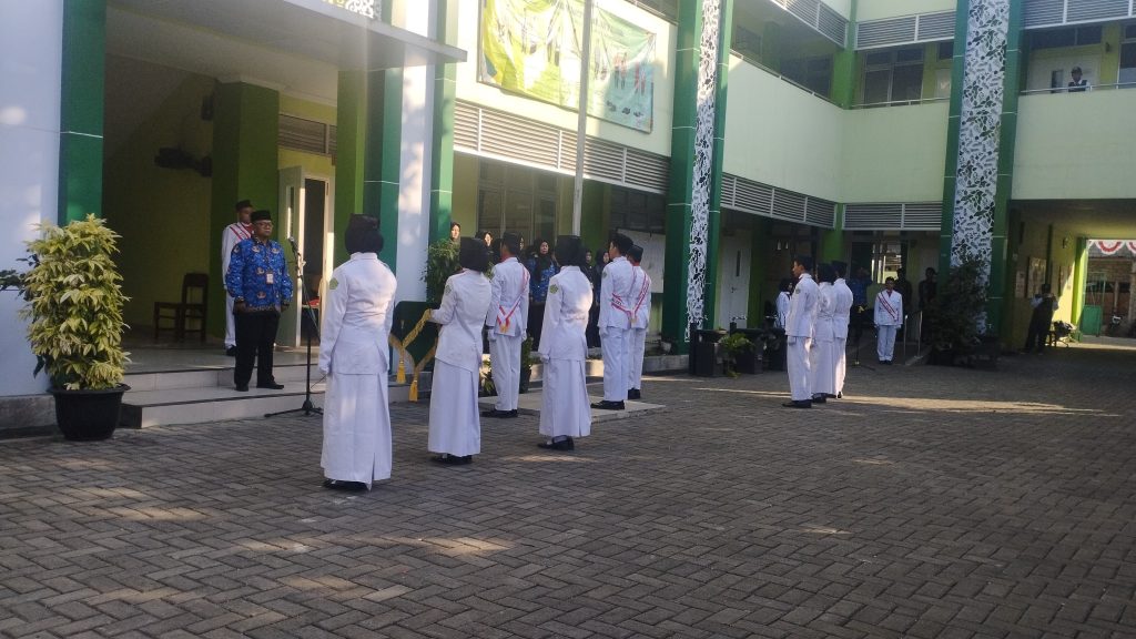 Petugas upacara kali ini merupakan siswa-siswi pilihan dari kelas VIII dan IX yang tergabung dalam Tim Paskibra. Dengan penuh disiplin, mereka menjalankan tugasnya mengibarkan bendera merah putih, yang menjadi momen puncak dalam upacara tersebut. Upacara berlangsung dengan tertib dan lancar, diakhiri dengan nyanyian lagu-lagu kebangsaan yang menambah semangat nasionalisme peserta upacara. Kegiatan upacara bendera ini menjadi salah satu bentuk penghormatan dan rasa syukur atas kemerdekaan yang telah diraih, serta sebagai momentum untuk terus mempererat persatuan dan kesatuan.(CR)