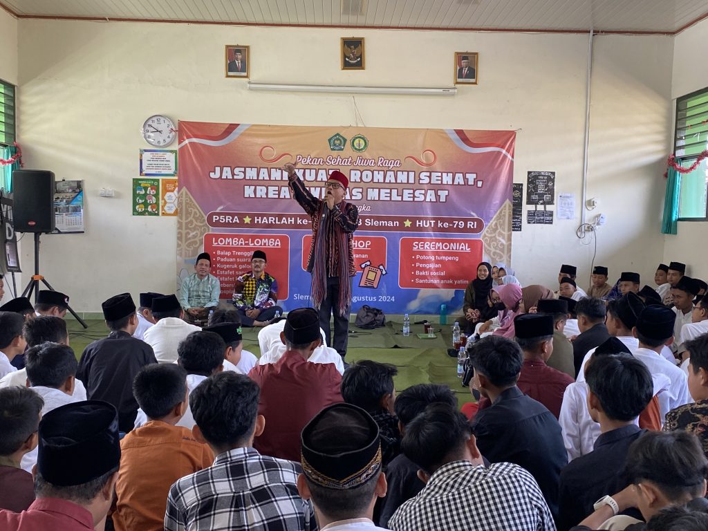 Memasuki inti acara yaitu tausiah yang dikemas apik oleh Kak Awe JDI (Jawara Dongeng Indonesia), seorang tokoh muda yang bergerak dan menjadi penggiat anak anak yang bernama aseli Abdul Wahab. Ustaz yang juga seorang guru SD Islam Al-Azhar Yogyakarta. Dalam tausiahnya Kak Awe memotivasi siswa untuk bersemangat mengisi kemerdekaan dengan menjadi pemuda yang HEBAT. Hebat disini merupakan singkatan dari 5 kata yang mengandung gambaran karakter generasi bangsa. Singkatan HEBAT sendiri mencakup lima kata dalam bahasa Inggris, yaitu Honest (jujur), Effort (ikhtiar), Brave (berani), Appreciate (menghargai jasa pahlawan kita), dan Trush (percaya kita akan sukses).