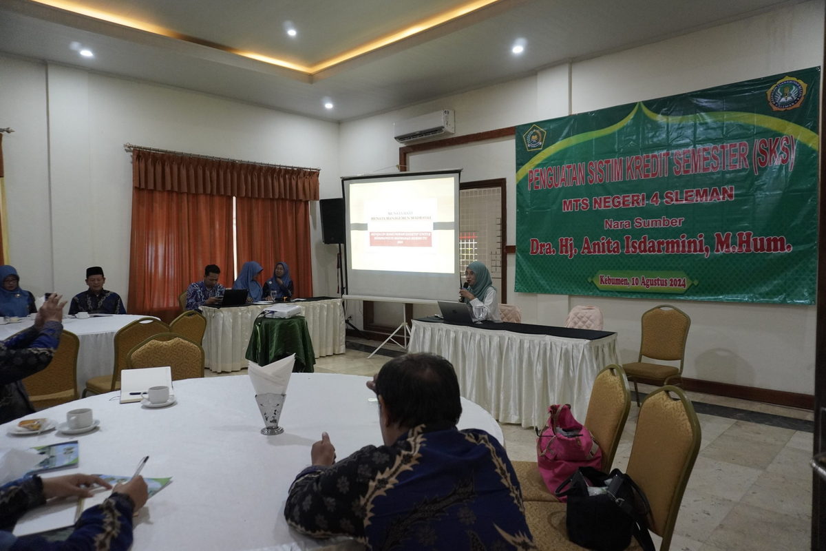 Kemenag Sleman News (MTsN 4 Sleman) – MTsN 4 Sleman melaksanakan kegiatan Penguatan Madrasah Sistem Kredit Semester (SKS) sebagai bagian dari upaya untuk memperbaharui dan meningkatkan kualitas pendidikan di madrasah. Langkah ini diharapkan akan menjadi terobosan signifikan dalam menuju madrasah maju bermutu mendunia, Sabtu (10/8/2024) bertempat di RM Candisari Kebumen.