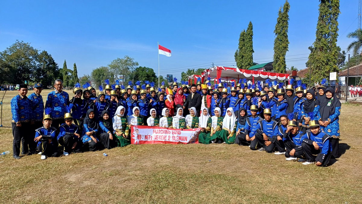 Kemenag Sleman News (MTsN 2 Sleman) — Tim drumband MTsN 2 Sleman, Gema Swara Masda, berhasil mencuri perhatian dalam upacara peringatan HUT Republik Indonesia ke-79 yang digelar di Kapanewon Tempel. Penampilan spektakuler mereka menambah kemeriahan acara yang diselenggarakan di lapangan umum setempat.