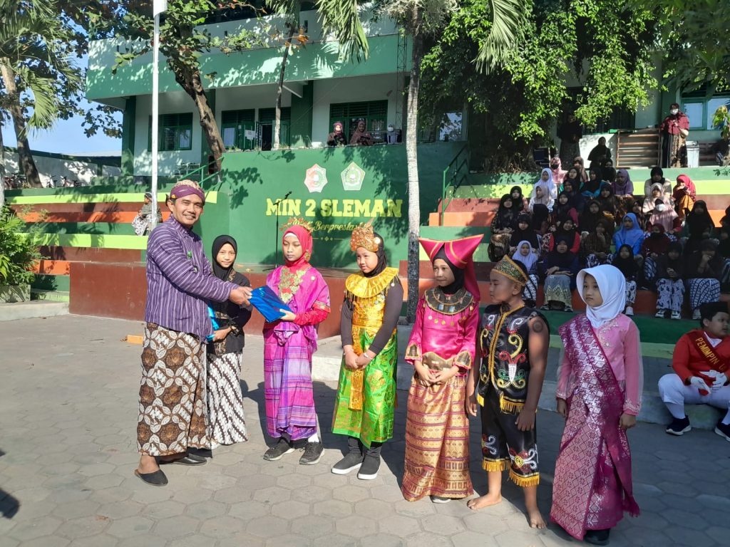 Dalam kesempatan istimewa ini, MIN 2 Sleman memutuskan untuk memberikan apresiasi khusus kepada siswa yang dinilai memiliki kostum terbaik. Apresiasi ini diberikan kepada Adzwa kelas 1C, John Giras M kelas 2B, Dinar kelas 3C, Azarine kelas 4B, Dienizza kelas 5B dan Inara Alesha kelas 6B yang memukau dalam balutan busana adat.