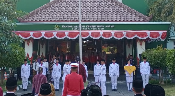 Siswa MAN 1 Sleman Bertugas pada Upacara HUT ke-79 RI di Kanwil Kemenag DIY