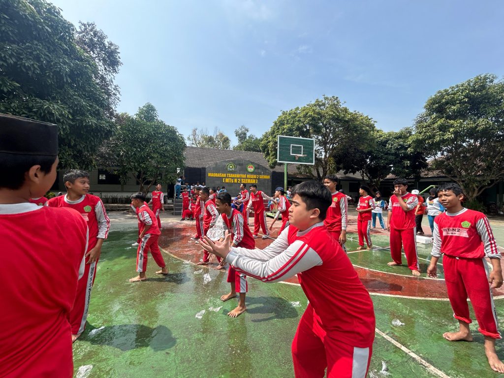 Tingkatkan Semangat Kebersamaan, MTsN 2 Sleman Gelar Lomba Estafet Air Antar Kelas