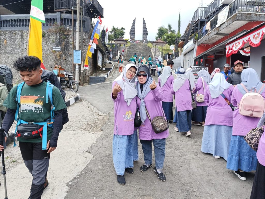Kemenag Sleman News (MTsN 2 Sleman) — Kepala Madrasah, Dra. Hj. Titik Susilawati, M.Pd. dan salah satu guru dari MTsN 2 Sleman, Febriati, S.Pd. turut berpartisipasi dalam acara fun gathering yang diselenggarakan oleh DWP (Dharma Wanita Persatuan) Kantor Kementerian Agama Kabupaten Sleman. Acara tersebut berlangsung di kawasan wisata Karanganyar pada hari Sabtu (24/8/2024). Adapun wisata yang dikunjungi adalah Kemuning Sky Hills, Kebun Teh Kemuning, Candi Cetho Karanganyar, dan Pusat Oleh-Oleh.