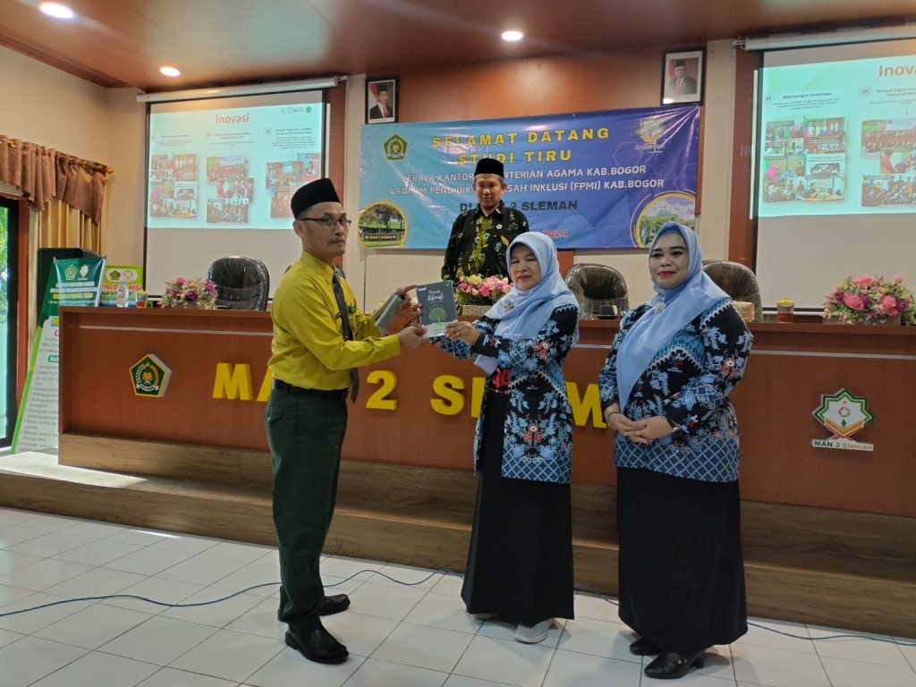 Kemenag Sleman News (MAN 2 Sleman)— MAN 2 Sleman merupakan Madrasah Inklusi pertama di Indonesia sejak tahun 1978. Madrasah ini juga sudah berkembang pesat terkait Pendidikan inklusinya, maka pada Jum’at (30/8/2024), MAN 2 Sleman menerima kunjungan studi tiru dari Kemenag Kab Bogor dan Forum Pendidik Madrasah Inklusi (FPMI) Kab Bogor. Rombongan sejumlah 50 orang dari kemenag bogor dan FPMI kab Bogor sampai di MAN 2 Sleman pukul 13.00. Kedatangan rombongan bertujuan untuk memperoleh wawasan dan inspirasi dalam upaya meningkatkan kualitas Pendidikan inklusi.