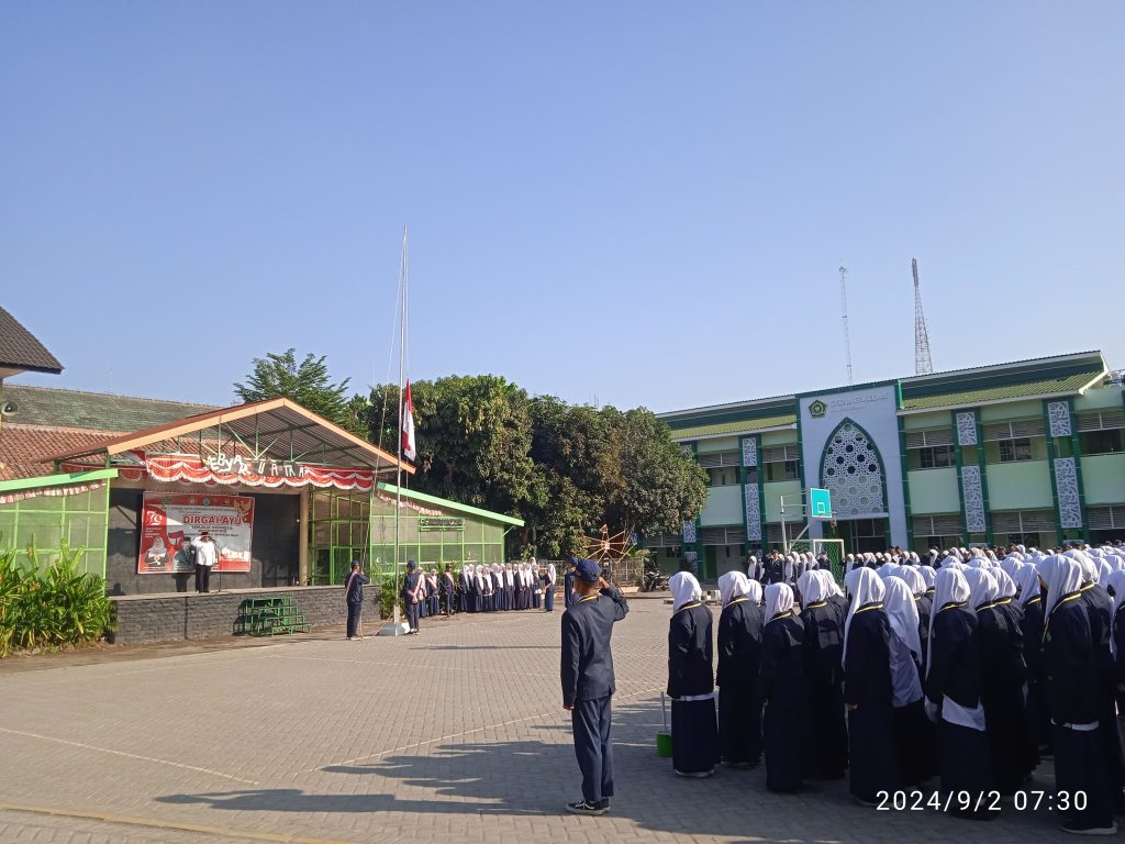 Kemenag Sleman News (MTsN 6 Sleman) — Upacara Bendera Hari Senin (3/9/2024) diikuti seluruh warga madrasah. Bertindak selaku pembina Upacara Alistyono Pramuhadi. Dalam amanatnya Alistyono memberikan tiga kunci sukses untuk meraih cita cita.