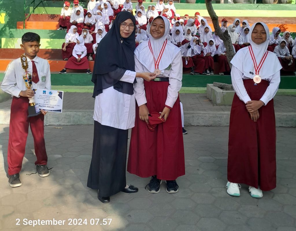 Kemenag Sleman News (MIN 2 Sleman) – Pada Senin (03/09/2024) seluruh siswa, guru dan pegawai MIN 2 Sleman mengikuti pelaksanaan upacar bendera di lapangan MIN 2 Sleman. Tak seperti biasanya, setelah upacara ini MIN 2 Sleman berikan apresiasi pada siswa berprestasi. Apresiasi ini diberikan kepada Kasyakur Akbar peraih Juara 3 Tenis Meja, Malayka Husna Kamila dan Aqmarina Aesha Naj’ba juara harapan 1 Voli. Mereka bertiga berlaga di even Olahraga Usia Dini Tingkat Kabupaten.