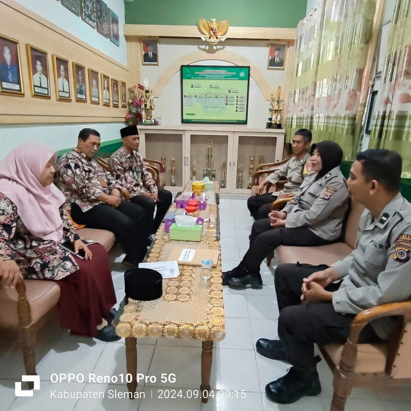 Kemenag Sleman News (MTsN 8 Sleman) – Dalam upaya menciptakan lingkungan sekolah yang aman dan kondusif, MTsN 8 Sleman menjalin kerjasama koordinasi dengan Polsek Prambanan untuk menanggulangi tantangan perilaku remaja di kalangan siswa. Koordinasi ini berlangsung pada Rabu (04/09/2024) di Ruang Tamu Kepala MTsN 8 Sleman dan dihadiri oleh Mahmudi beserta tim dari Polsek Prambanan, Kepala MTsN 8 Sleman, Waka Kesiswaan, serta Guru Bimbingan Konseling (BK) MTsN 8 Sleman.