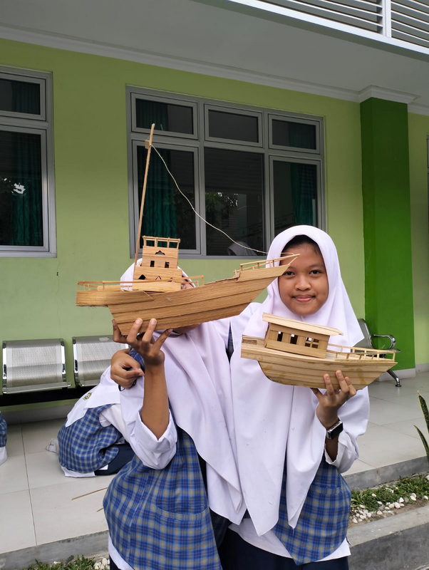 Siswa MTs Negeri 9 Sleman Berkreasi Membuat Miniatur Kapal Laut dari Bambu