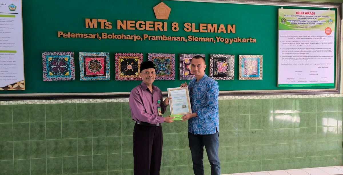 Kepala MTsN 8 Sleman Terima Penyerahan Sertifikat dan Kacamata dari Yayasan Amal Mata Indonesia
