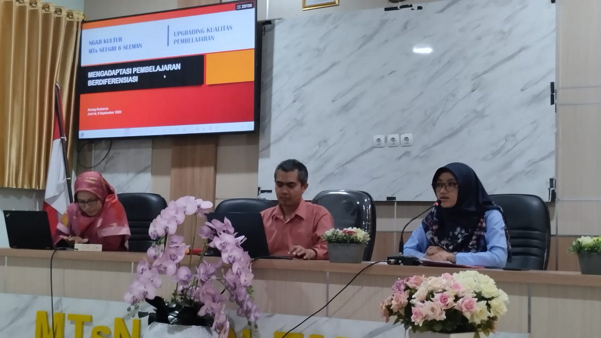 Wakil Kepala Madrasah Bidang Kurikulum MTsN 6 Sleman Anang Sumarna, S. Ag., M.S.I. memaparkan “Tema-tema dan konsep-konsep ideal yang diangkat pada setiap pertemuan pun relate dengan rapor pendidikan. Harapan ke depan dapat membangkitkan giroh komunikasi dan kolaborasi antar guru sehingga MTsN 6 semakin baik, minimal dari aspek pembelajaran dan inovasinya.”