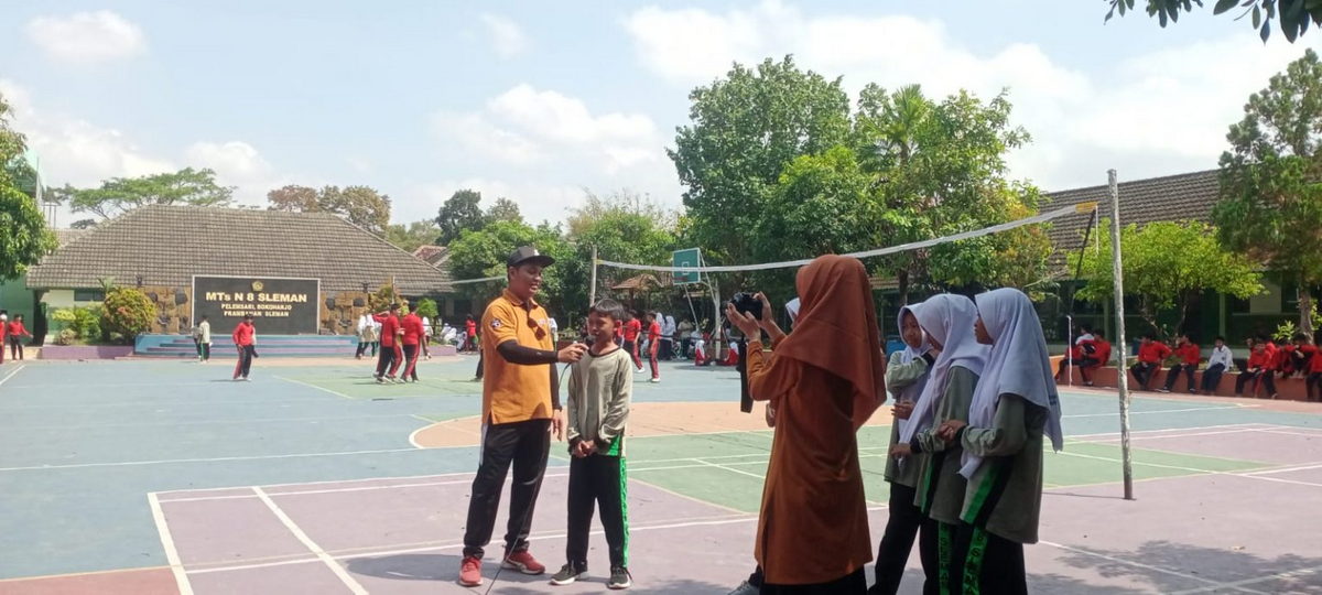Kemenag Sleman News (MTsN 8 Sleman) – Peringatan Hari Olahraga Nasional (HAORNAS) yang ke-41 di MTsN 8 Sleman, yang berlangsung di halaman madrasah pada hari Senin (9/9/2024) diwarnai dengan penampilan bakat luar biasa dari siswa-siswi madrasah. Salah satu momen yang paling mengejutkan terjadi ketika salah satu siswa kelas 7 secara tiba-tiba menunjukkan kemampuan istimewa mereka saat acara pembagian door prize.