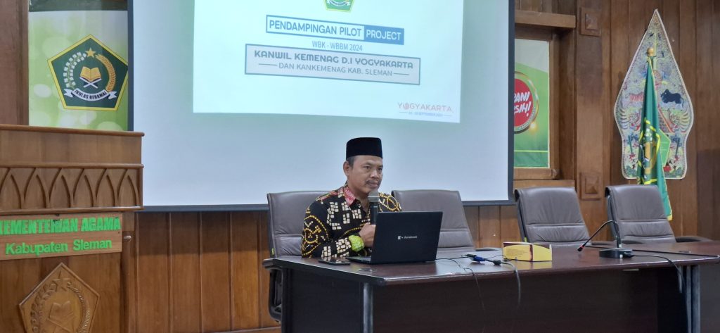 Kemenag Sleman News – Dalam rangka memantau kesiapan satuan kerja sebagai pilot project WBK Tahun 2024, Kantor Kementerian Agama Kabupaten Sleman mendapat Pendampingan dari Tim Pendampingan Biro Organisasi dan Tata Laksana Sekretariat Jenderal Kementerian Agama RI, Kamis (19/09/2024) di Aula Kemenag Sleman.