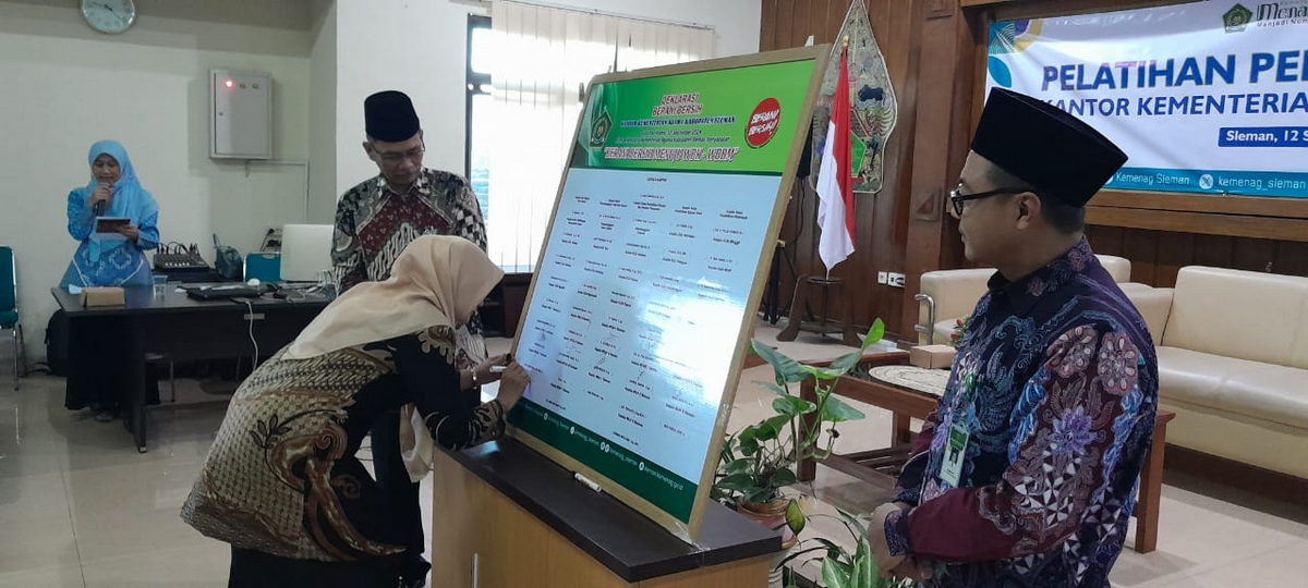 Dalam sambutan berikutnya, Sidik Pramono selaku Kepala Kantor Kemenag Sleman menyampaikan bahwa Kemenag Sleman sedang mempersiapkan diri untuk menjadi Wilayah Bebas Korupsi (WBK). “Penilaian untuk WBK belum ditetapkan, namun persiapan harus dilakukan sejak dini.” Ia menegaskan bahwa keberhasilan meraih status WBK sangat terkait dengan pelayanan prima. “Masyarakat akan menilai kita berdasarkan pelayanan yang kita berikan, tanpa perlu dikondisikan,” tambah Sidik Pramono.