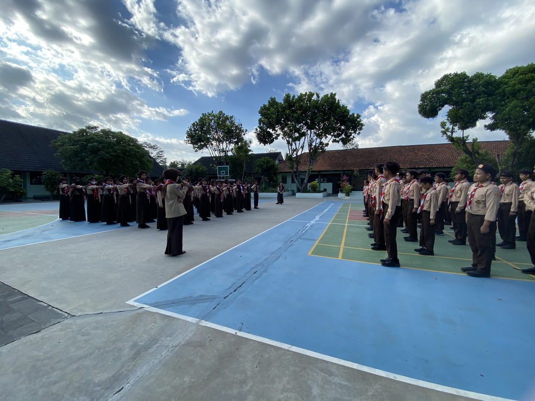 Materi ekstrakulikuler Pramuka kali ini adalah latihan baris berbaris. Para penggalang dilatih baris berbaris dengan beregu terpisah antara penggalang putra dan penggalang putri. Dengan tegas Kak Sabrina melatih para penggalang siang itu. Di bawah terik matahari yang bersinar mereka tak gentar. Penggalang kelas VIII dengan tertib ikuti kegiatan tersebut hingga selesai.