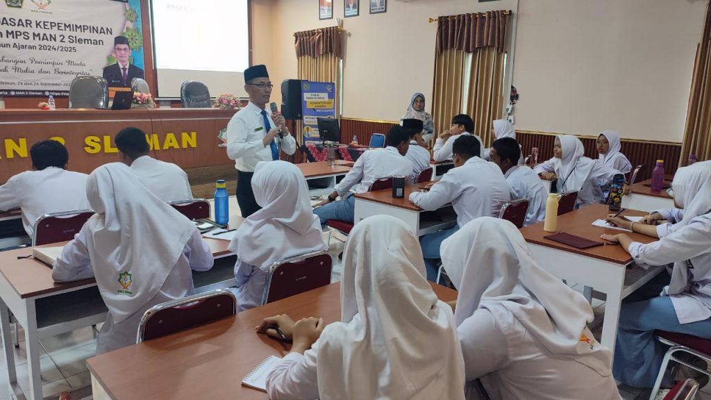 Kemenag Sleman News (MAN 2 Sleman ) – Latihan dasar kepemimpinan (LDK) merupakan suatu pelatihan yang bertujuan untuk meningkatkan kemampuan atau skill dalam kepemimpinan. Kemampuan kepemimpinan ini dimulai dengan membangun karakter pribadi (personality) supaya semakin kuat. LDK MAN 2 Sleman diikuti oleh pengurus OSIS dan MPS MAN 2 Sleman. Berlangsung pada (26/9/2024) di Aula MAN Sleman. Tema yang diusung membangun pemimpin muda yang berakhlak mulia dan berintegritas.