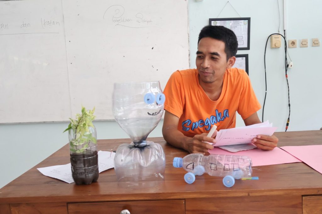Kak Sigit menjelaskan kepada peserta tentang pentingnya mengamati lingkungan sekitar dan menciptakan karya yang lebih bermanfaat. “Kita bisa membuat banyak hal dari sampah, seperti biopori untuk pengolahan air tanah dan pupuk dari sampah organik,” ujarnya. Dia juga mendorong siswa untuk berpikir lebih jauh tentang dampak positif yang bisa dihasilkan dari kegiatan ini terhadap lingkungan.