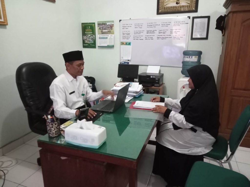 Kemenag Sleman News (MTsN 8 Sleman) – Dalam rangka meningkatkan kualitas pembelajaran, Kepala MTsN 8 Sleman, Agus Sholeh, S.Ag., mengadakan pembinaan kepada guru pasca supervisi yang dilakukan pada minggu sebelumnya. Salah satu guru yang menerima pembinaan adalah pengajar mata pelajaran Fikih, Eti Maryati, S.Pd.I., pada Senin (30/09/2024) di ruang Kepala Madrasah. Pembinaan ini merupakan tindak lanjut dari supervisi yang berlangsung pada Jumat (27/09/2024) di kelas IX A, di mana Eti Maryati menerapkan pendekatan kinestetik untuk meningkatkan keterlibatan siswa.