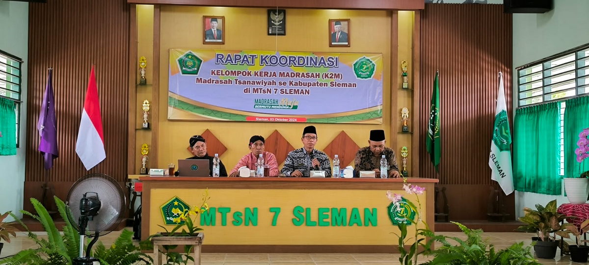 Kemenag Sleman News (MTsN 8 Sleman) – Kepala Madrasah Tsanawiyah Negeri (MTsN) 8 Sleman, Agus Sholeh, S.Ag., turut menghadiri Rapat Koordinasi (Rakor) Kelompok Kerja Madrasah Tsanawiyah (K2MTs) Kabupaten Sleman pada Kamis (3/10/2024) di MTsN 7 Sleman. Rakor ini dihadiri oleh seluruh kepala madrasah Tsanawiyah di wilayah Sleman dengan tujuan untuk memperkuat sinergi antar madrasah serta menyelaraskan program-program pendidikan.