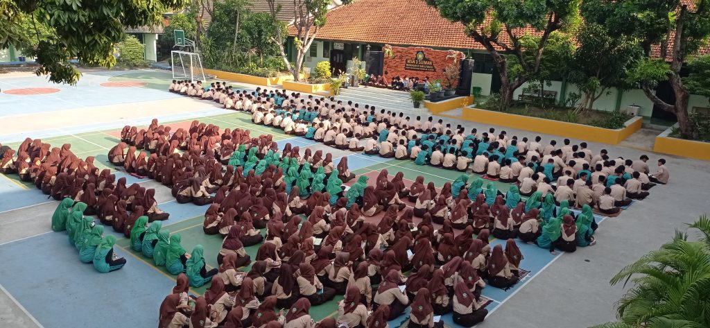 Murojaah pada hari ini dibagi menjadi dua sesi. Sebelumnya ketua divisi percepatan tahfidz MTs Negeri 3 Sleman, Nur Hudariyanto, S.Pd.I. sudah menunjuk beberapa siswa untuk memimpin murojaah kali ini. Murojaah sesi yang pertama mulai juz 1 ayat 1-29. Murojaah dengan metode Ummi ini dilakukan dengan cara siswa terpilih melafalkan ayat pertama terlebih dahulu. Kemudian diikuti yang lainnya. Setelah ayat pertama selesai dilanjutkan ayat kedua, ketiga, dan sampai ayat ke-29. Murojaah sesi kedua mulai juz 1 ayat 1-10 dan dilafalkan seluruh warga madrasah secara bersama-sama. Terpantau seluruh siswa melantunkan ayat-ayat suci hari ini dengan semangat. (sil)