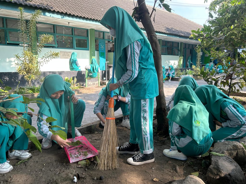 Kemenag Sleman News (MTsN 2 Sleman) — MTsN 2 Sleman kembali mengadakan kegiatan rutin Jumat Bersih pada Jumat (11/10) di lingkungan madrasah. Kegiatan ini melibatkan seluruh warga madrasah, mulai dari siswa, guru, hingga pegawai. Tujuannya adalah untuk menciptakan lingkungan madrasah yang bersih, asri, dan nyaman sebagai tempat belajar.