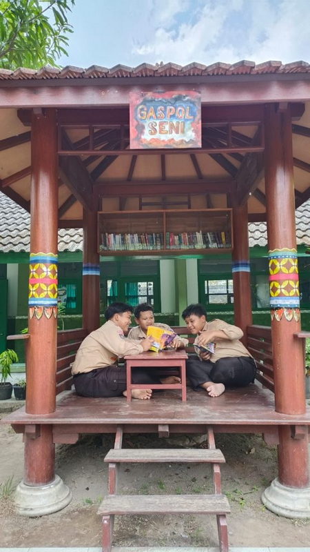 Tidak hanya sebagai tempat membaca, Gaspol juga menjadi ruang interaksi dan diskusi antar siswa. “Kami merancang ruang ini agar nyaman dan ramah bagi siswa. Dengan begitu, mereka bisa membaca, mengerjakan tugas, atau berdiskusi dengan teman-teman dalam suasana yang lebih santai dan kreatif,” ungkap Rochmad Rapih Raharjo, S.Pd, yang juga melukis dan mendesain gazebo ini dengan sentuhan seni corak batik yang khas.