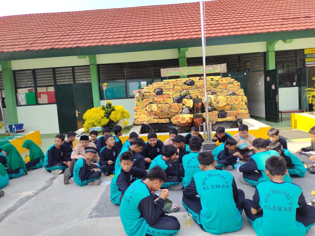 Kemenag Sleman News (MTsN 3 Sleman)– Program Matsanega Hebat yang diselenggarakan MTsN 3 Sleman pada minggu ketiga bulan Oktober diisi dengan program Matsanega Sehat. Kegiatan tersebut rutin dilaksanakan oleh guru, pegawai, dan seluruh siswa secara terprogram. Pada Jumat pagi (18/10/2024) kegiatan diawali dengan senam dilanjutkan sarapan bersama.