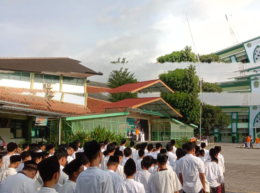 Sleman (MTsN 6 Sleman)– Menanamkan kesadaran sebagai siswa sekaligus santri MTsN 6 Sleman dengan upacara dan pengajian akbar pada Selasa (22/10) . Upacara bersama diikuti siswa-siswi dan guru pegawai Madrasah Integrasi yaitu MIN 1 Sleman, MTsN 6 Sleman dan MAN 3 Sleman bertempat di lapangan madrasah integrasi.