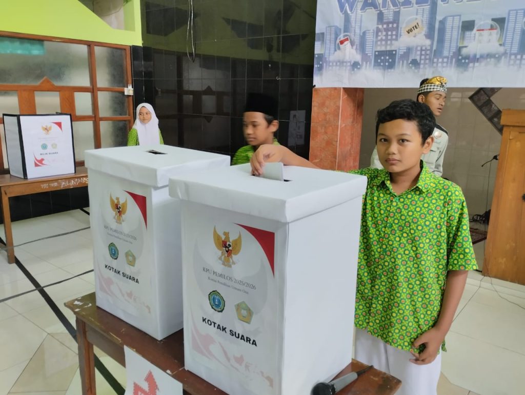 Kankemenag Sleman News (MTsN 6 Sleman)- Masa bakti kepengurusan OSIS MTsN 6 Sleman tahun 2024 segera beralih pada kepengurusan baru. Pada Rabu (23/10/2024) di Masjid Darul Adzkiya MTsN 6 Sleman digelar pesta demokrasi pemungutan suara untuk memilih Ketua dan Wakil Ketua OSIS baru untuk tahun 2025. Kegiatan ini sekaligus menjadi dokumentasi aksi kegiatan P5RA kelas 8 tema “Suara Demokrasi”.