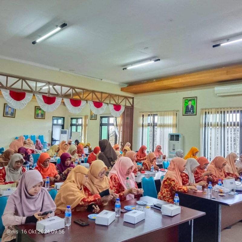 Kemenag Sleman News (MTsN 2 Sleman) — Pada Rabu (16/10) lalu, salah satu pegawai MTsN 2 Sleman, Maemunah, mengikuti kegiatan Dharma Wanita Persatuan (DWP) yang diselenggarakan di ruang aula Kantor Kementerian Agama (Kemenag) Kabupaten Sleman. Kegiatan ini diisi dengan praktik membuat bros, yang diikuti oleh para anggota DWP dari berbagai instansi di bawah naungan Kemenag Kabupaten Sleman.