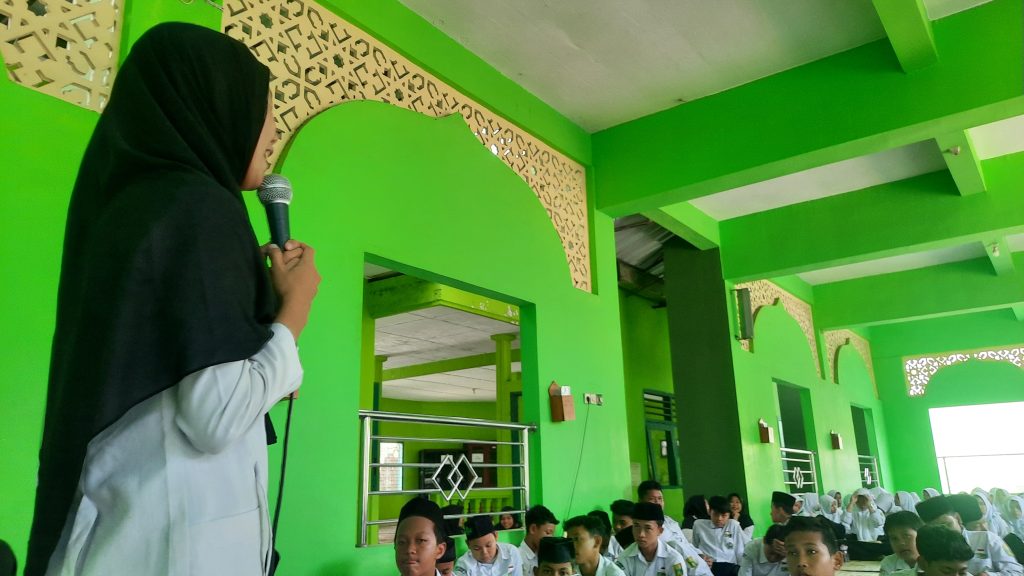 Kemenag Sleman News (MTsN 2 Sleman) — Pada Senin (14 Oktober 2024) siswa kelas 7 MTsN 2 Sleman mengikuti kegiatan pembekalan cara pembuatan majalah dinding (mading) yang diselenggarakan di masjid madrasah. Kegiatan ini menghadirkan Siti Zaujah Damayanti atau yang kerap disapa Bu Zao, guru seni budaya dari MTsN 3 Sleman, sebagai narasumber.