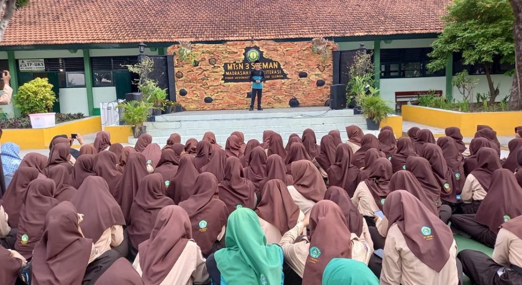 Kemenag Sleman News (MTsN 3 Sleman) – Setiap madrasah memiliki cara sendiri untuk menemukan bakat siswa-siswanya. MTsN 3 Sleman dengan program Matsanega Talent Show telah terbukti mampu menemukan bakat, mengeksplor bakat, dan mengasah bakat siswa. Program ini, rutin dilaksanakan setiap Jumat ketiga tiap bulannya. Di bulan Oktober ini, Matsanega Talent Show dilaksanakan pada Jumat pagi (25/10/2024) di halaman madrasah. Kegiatan tersebut digelar sekaligus sebagai ajang uji coba bagi siswa yang akan menghadapi kompetisi. Berpusat di panggung madrasah, panitia yang digawangi bidang kesiswaan menampilkan penampilan bakat siswa, khususnya pidato Bahasa Arab.