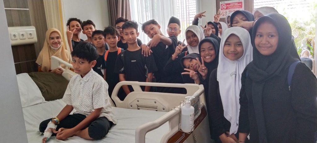 Orang tua serta keluarga Zulfan yang hadir mendampingi selama perawatan pun mengucapkan terima kasih kepada siswa dan pihak sekolah atas perhatian serta dukungan yang diberikan. “Kami sangat bersyukur atas perhatian dan kunjungan dari teman-teman Zulfan serta Ibu Ike. Semoga perhatian dan doa dari kalian dapat menjadi penyemangat bagi Zulfan dalam proses pemulihannya,” ujar Mia Zuhara, Ibu dari Zulfan.