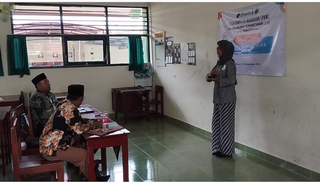 Kemenag Sleman News (MTsN 8 Sleman) – Morissa Rendy, siswa kelas VIII B MTsN 8 Sleman, mewakili madrasah dalam Lomba Pidato Bahasa Jawa Putri yang digelar dalam rangkaian Pekan Kompetisi Madrasah Jenjang MTs se-Kabupaten Sleman 2024. Lomba ini berlangsung pada Rabu (06/11/2024) di MTsN 3 Sleman, menjadi salah satu momen penting untuk melestarikan bahasa dan budaya Jawa di kalangan generasi muda.