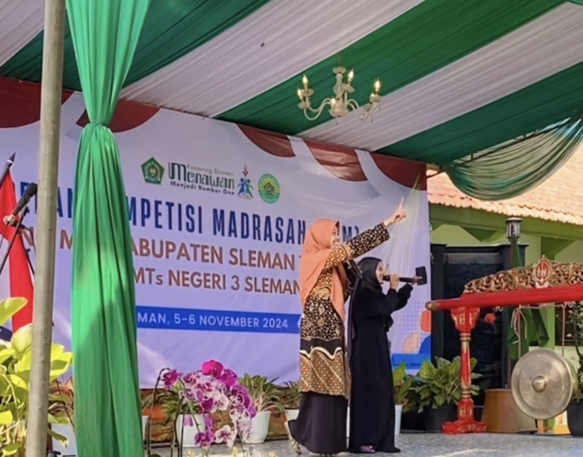 Tamu undangan dan para peserta menyambut duet cantik dua siswi MTs Negeri 3 Sleman dengan tepuk tangan meriah. Setelah selesai tampilan duet dua siswi dilanjutkan satu lagu Jogja Istimewa yang dipersembahkan oleh duet guru dan siswa, yaitu Muflikhatun Ni’mah, S.Pd. berkolaborasi dengan Tiara kelas IX E.