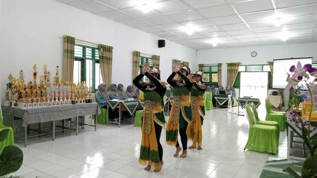 Begitu memasuki ruang aula tempat kegiatan berlangsung, tim pengawas kembali disambut dengan alunan gamelan yang dibawakan oleh siswa ekstrakurikuler karawitan. Penampilan ini menciptakan suasana yang hangat dan memperlihatkan nilai budaya yang diintegrasikan dalam kehidupan madrasah. Suasana semakin semarak ketika tiga siswa membawakan tari tradisional “Angguk Manis” dengan gerakan yang anggun dan penuh semangat di aula madrasah.