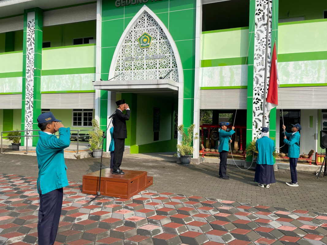 Pelaksanaan upacara berjalan lancar dengan petugas upacara yang merupakan anggota OSIS MTsN 4 Sleman. Mereka tampil dengan baik dalam menjalankan tugasnya, mulai dari pengibaran bendera hingga pembacaan teks Pancasila dan UUD 1945. Peran aktif siswa dalam kegiatan ini mencerminkan pembinaan karakter yang terus dikembangkan oleh madrasah.