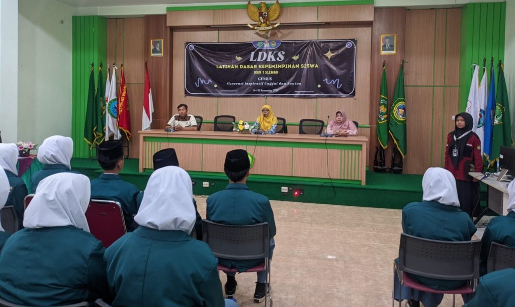 Kemenag Sleman News (MAN 1 Sleman) – Guna membekali pengurus organisasi siswa, MAN 1 Sleman menyelenggarakan Latihan Dasar Kepemimpinan Siswa (LDKS). LDKS merupakan bentuk kegiatan yang bertolak ukur kepada peningkatan sumber daya siswa untuk mendalami dan memahami tentang konsep atau dasar–dasar sebuah organisasi. Kegiatan digelar pada Sabtu-Minggu (9-10/11/2024) di Aula madrasah dan Shaba Outbond Purwobinangun Pakem Sleman.