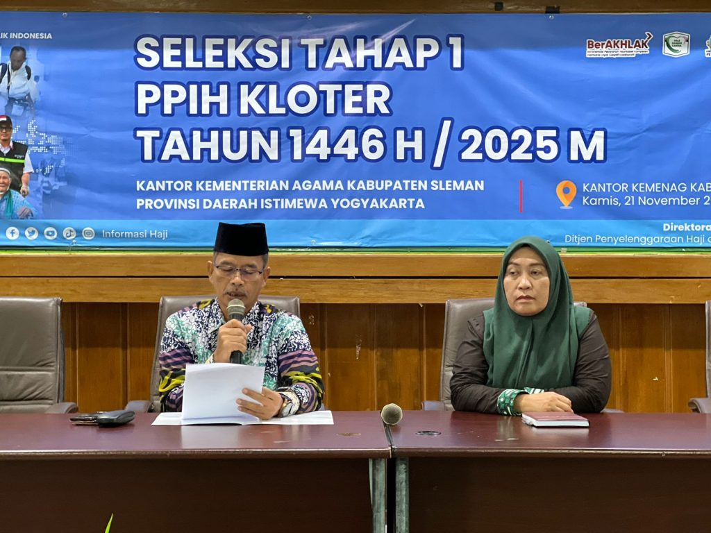 Proses seleksi tahap 1 diikuti oleh 17 peserta. Dari 101 jumlah pendaftar, 13 orang dinyatakan lolos seleksi administrasi dengan formasi ketua kloter (TPHI) dan 4 orang pembimbing ibadah kloter (TPIHI) sedangkan 84 orang dinyatakan tidak lolos administrasi karena tidak adanya surat rekomendasi dan tidak adanya formasi yang tersedia yang dipilih oleh peserta. Hal ini disampaikan oleh Kepala Seksi Penyelenggara Haji dan Umroh (Kasi PHU) Kemenag Sleman, Dra. Hj. Noor Imanah, M.Si dalam Laporan Penyelenggaraan Seleksi Petugas Haji Tahun 1446 H/2025 M, tahap 1.