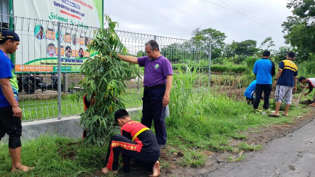 Kemenag Sleman News (MTs N 1 Sleman) — Dalam rangka memperingati Hari Menanam Pohon Indonesia, MTsN 1 Sleman laksanakan aksi tanam pohon bersama yang melibatkan seluruh warga smadrasah. Acara tersebut dipimpin langsung oleh Kepala MTsN 1 Sleman, Sutarjo, yang bersama para guru dan peserta didik menanam pohon perindang jenis glodogan tiang di sepanjang jalan wilayah madrasah, Jumat (29/11/2024).