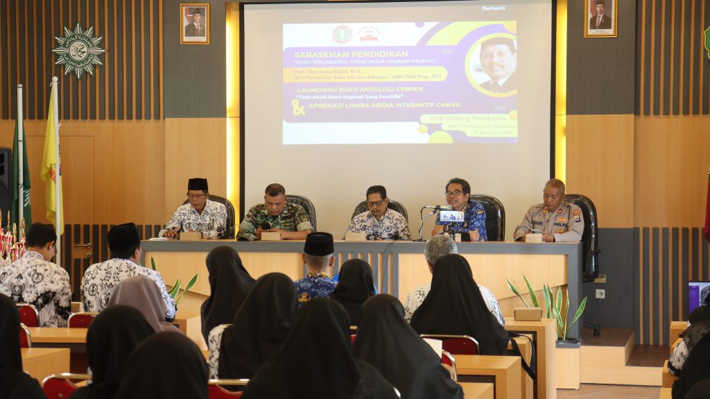 Kemenag Sleman News – (MTsN 8 Sleman) Kepala MTsN 8 Sleman, Agus Sholeh, S.Ag., menghadiri sarasehan pendidikan bertema “Guru Terlindungi, Tugas Mulia Semakin Dicintai” yang diselenggarakan oleh Pengurus PGRI Kapanewon Prambanan. Acara ini berlangsung pada Jumat (29/11/2024) di SMK Muhammadiyah Prambanan sebagai bagian dari rangkaian peringatan Hari Guru Nasional.
