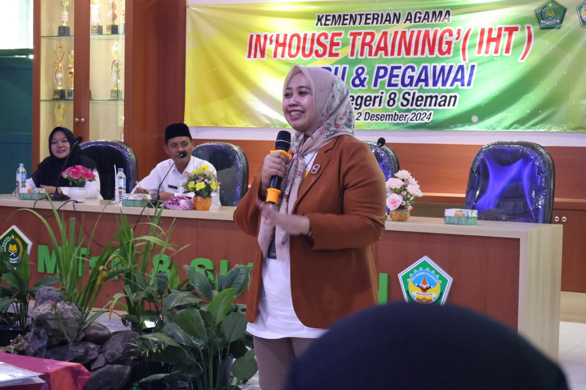 Kepala MTsN 8 Sleman, Agus Sholeh, S.Ag., dalam sambutannya menyampaikan apresiasi atas terlaksananya pelatihan ini. “Kerjasama dengan BSI dalam kegiatan In House Training ini adalah bagian dari komitmen kami untuk terus berbenah dan memberikan layanan terbaik kepada seluruh pemangku kepentingan. Saya berharap ilmu yang diperoleh hari ini dapat langsung diaplikasikan, sehingga tidak hanya siswa yang merasa nyaman, tetapi juga semua pihak yang terlibat dengan madrasah ini,” ucapnya.