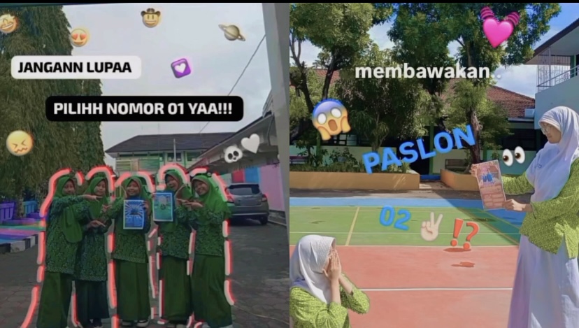 Setiap kelas dibagi menjadi tiga timses sesuai jumlah paslon yang ditandingkan. Mereka berkampanye mendukung paslon yang mereka jagokan. Dengan kreativitas, para siswa membuat poster manual serta digital. Setelah itu, secara berkelompok para siswa membuat video kampanye yang diunggah di Instagram.