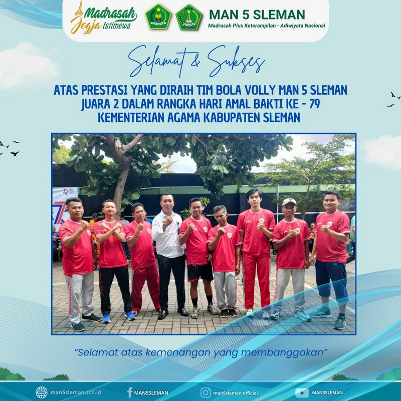 “Kami sangat bangga dengan prestasi tim bola voli MAN 5 Sleman. Ini adalah bukti bahwa kerja keras dan semangat kebersamaan dapat membawa hasil yang luar biasa. Semoga pencapaian ini menjadi inspirasi bagi seluruh keluarga besar MAN 5 Sleman untuk terus berprestasi, baik dalam bidang akademik maupun non-akademik.”