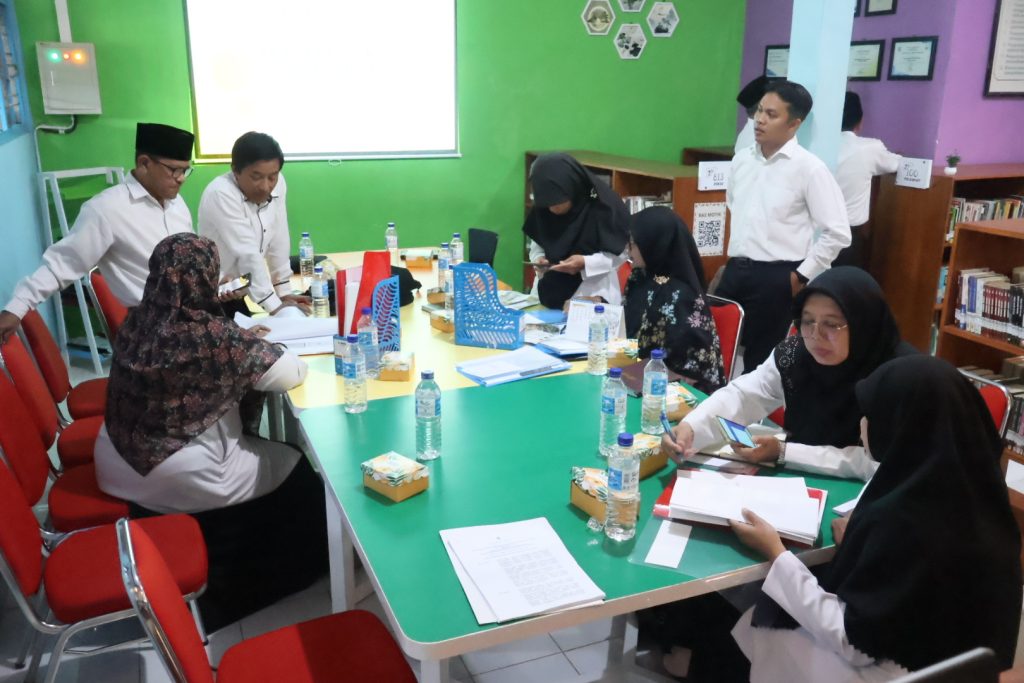 Sesi berikutnya adalah tanya jawab dan bedah borang akreditasi. Para peserta dibagi menjadi kelompok-kelompok kecil untuk mendalami setiap komponen borang, seperti manajemen koleksi, pelayanan pengguna, dan tata kelola perpustakaan. Diskusi berlangsung interaktif dengan banyak pertanyaan dari pihak MTsN 10 Sleman terkait strategi dan tantangan yang dihadapi saat proses akreditasi.