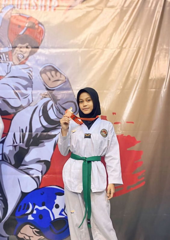 Sleman (MTsN 9 Sleman)- Dhyandra Cinta Agustira, siswi kelas VIII D MTsN 9 Sleman, berhasil menorehkan prestasi membanggakan dengan meraih juara 3 pada kategori Kyorugi Cadet Putri U47 Kg B di ajang Kejuaraan Nasional Indonesia Super Fight Taekwondo Championship 2024. Turnamen ini berlangsung pada 21-22 Desember 2024 di GOR Among Rogo, Yogyakarta, dan diikuti oleh ratusan atlet dari seluruh Indonesia.